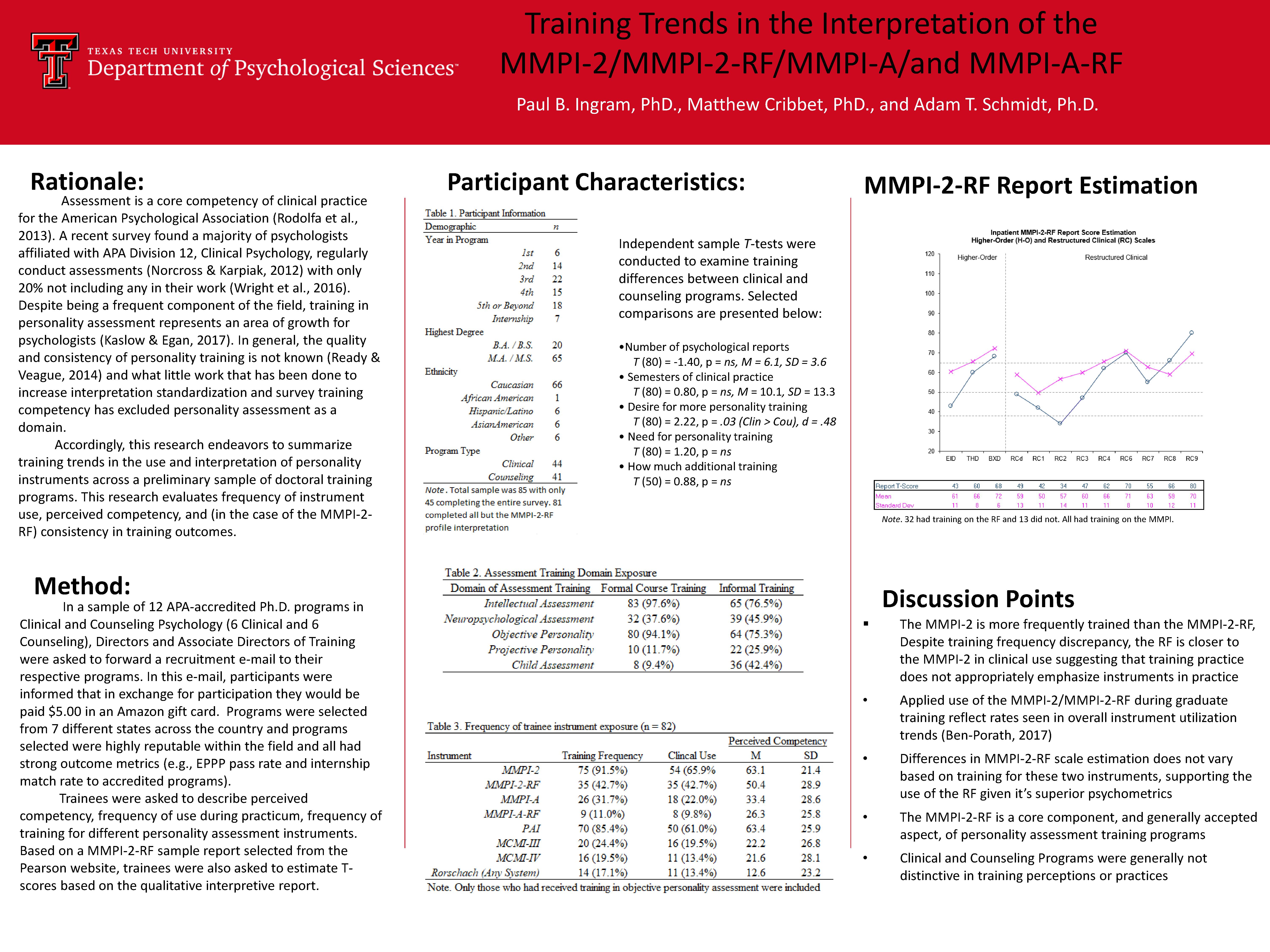 I also received received notification from Pearson Clinical Assessments that they will be providing partial research for my grant on the National Assessment Training in Health Service Psychology. This research funding will expand the research presented at the 2018 MMPI symposium (currently under review for publication) summarized in this presentation.