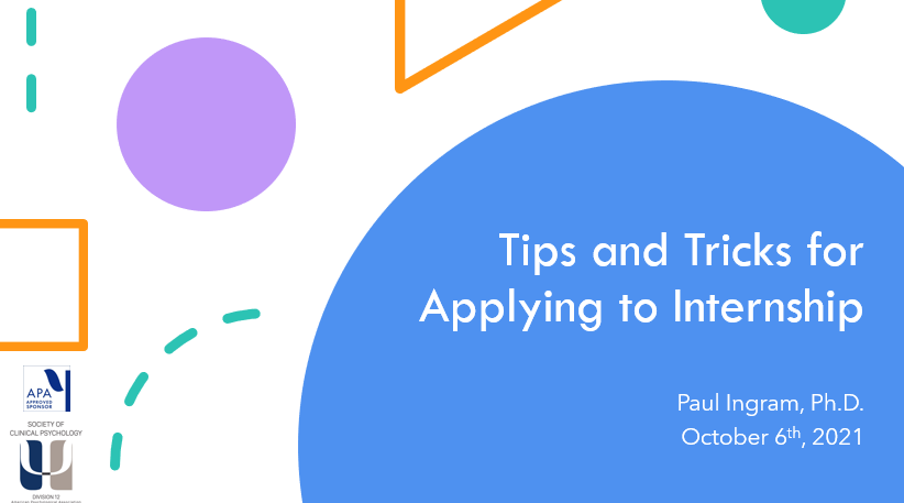 Today (in about 30 minutes from my writing this) I’m going to be presenting to Division 12 (Clinical Psychology)’s section for Students and Early Career Professions (formally called Section Ten). I’m super excited to help demystify the internship process and help applicants maximize their success and desired career trajectories. I also want to make sure the materials are available from the talk